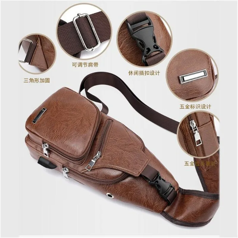 Мужские сумки через плечо с USB-зарядкой, Мужская нагрудная сумка с...