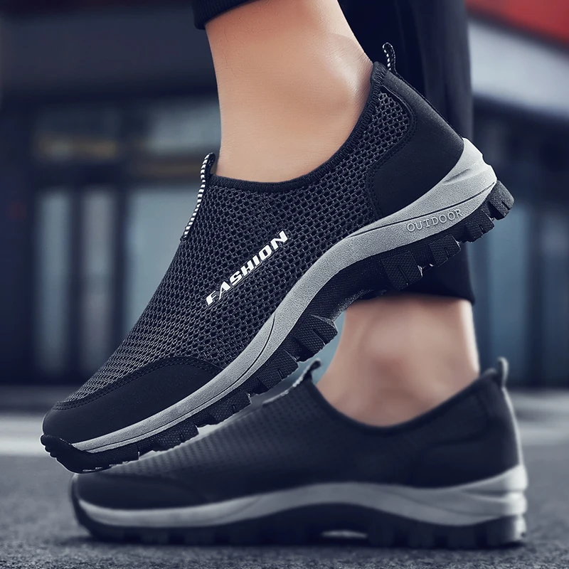 Кроссовки мужские, дышащие, сетчатые, серые, черные, летние, 2021