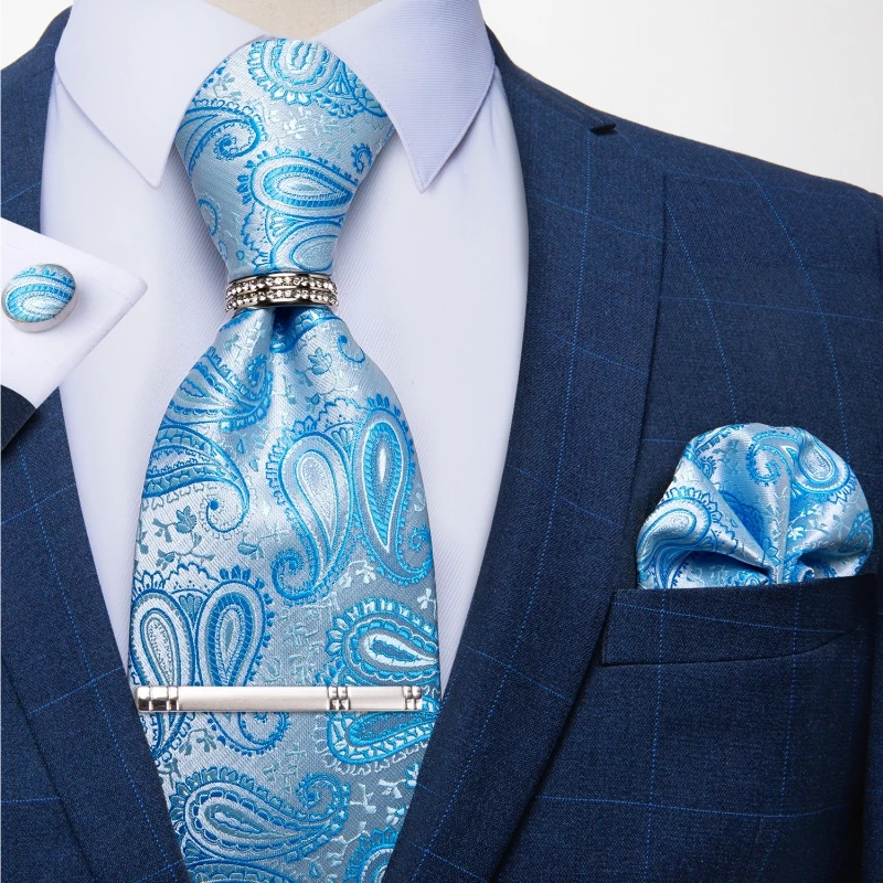 DiBanGu дизайн мужской галстук черный золотой Пейсли Шелковый Свадебный галстук для мужчин галстук Hanky запонки кольцо набор модный костюм Деловые Вечерние