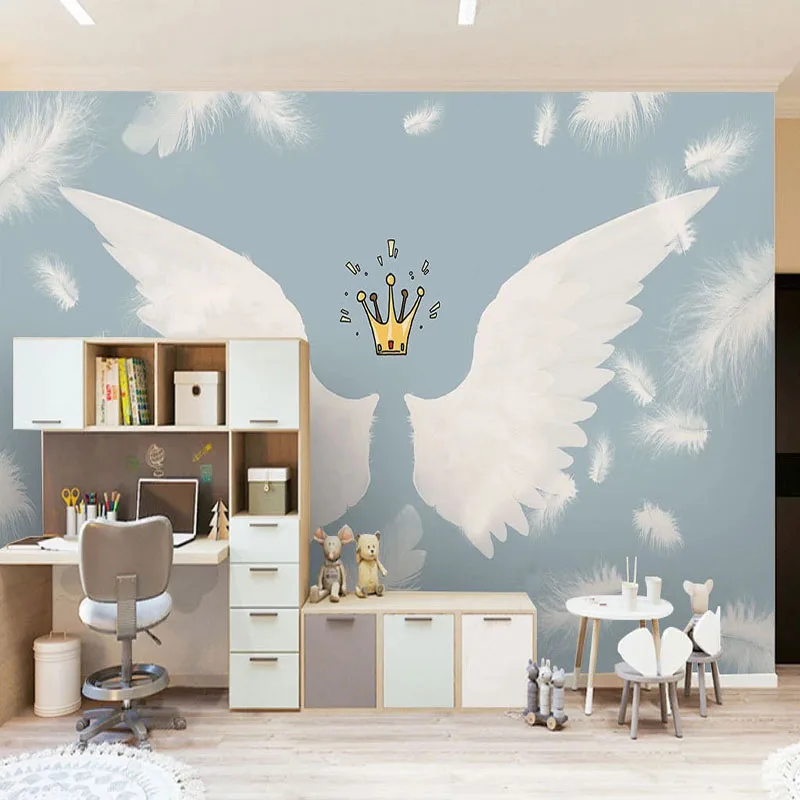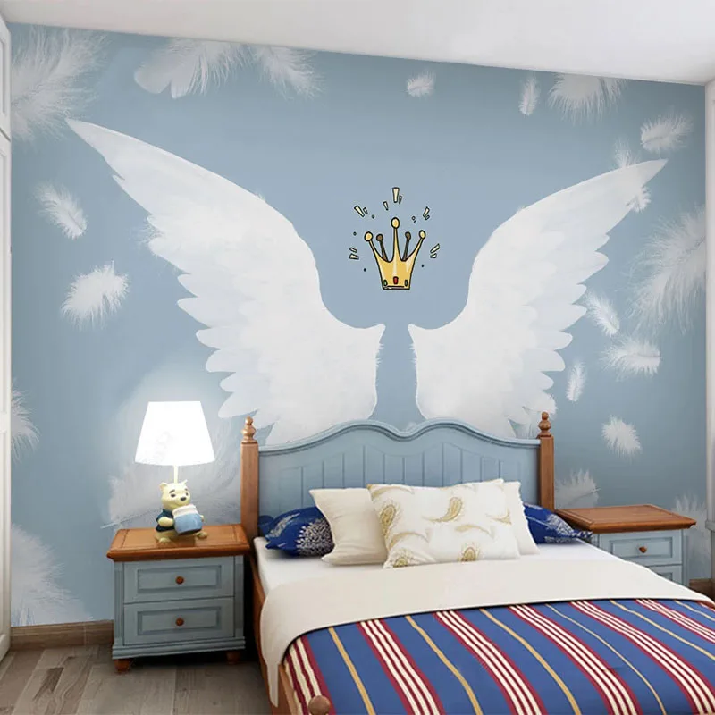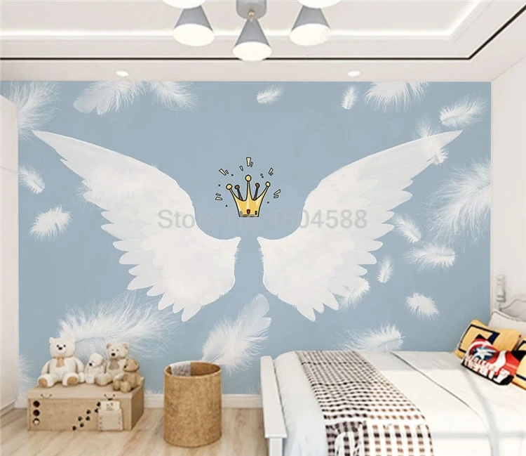 Пользовательские Настенные обои, современные скандинавские мультфильмы, ручная роспись, крылья ангела, перья, фон для детской комнаты, обои, фрески