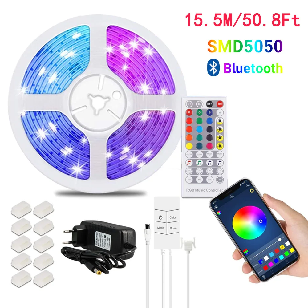 15 м50 футов Bluetooth светодиодная лента освещения Синхронизация с музыкой APP управление изменение цвета SMD 5050 RGB RF пульт дистанционного управления для комнаты Вечерние