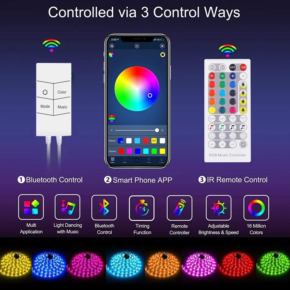 Светодиодная лента 5 м 20 м 30 м 40 м RGB 5050 Гибкая лампа музыка ...