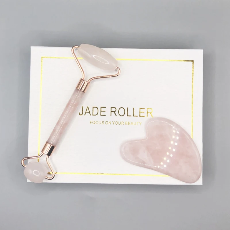 Массажер для лица-Подъемный розовый КВАРЦЕВЫЙ ролик натуральный нефрит ролик для массажа лица для похудения Нефритовая соскабливающая маска щетка набор из трех предметов