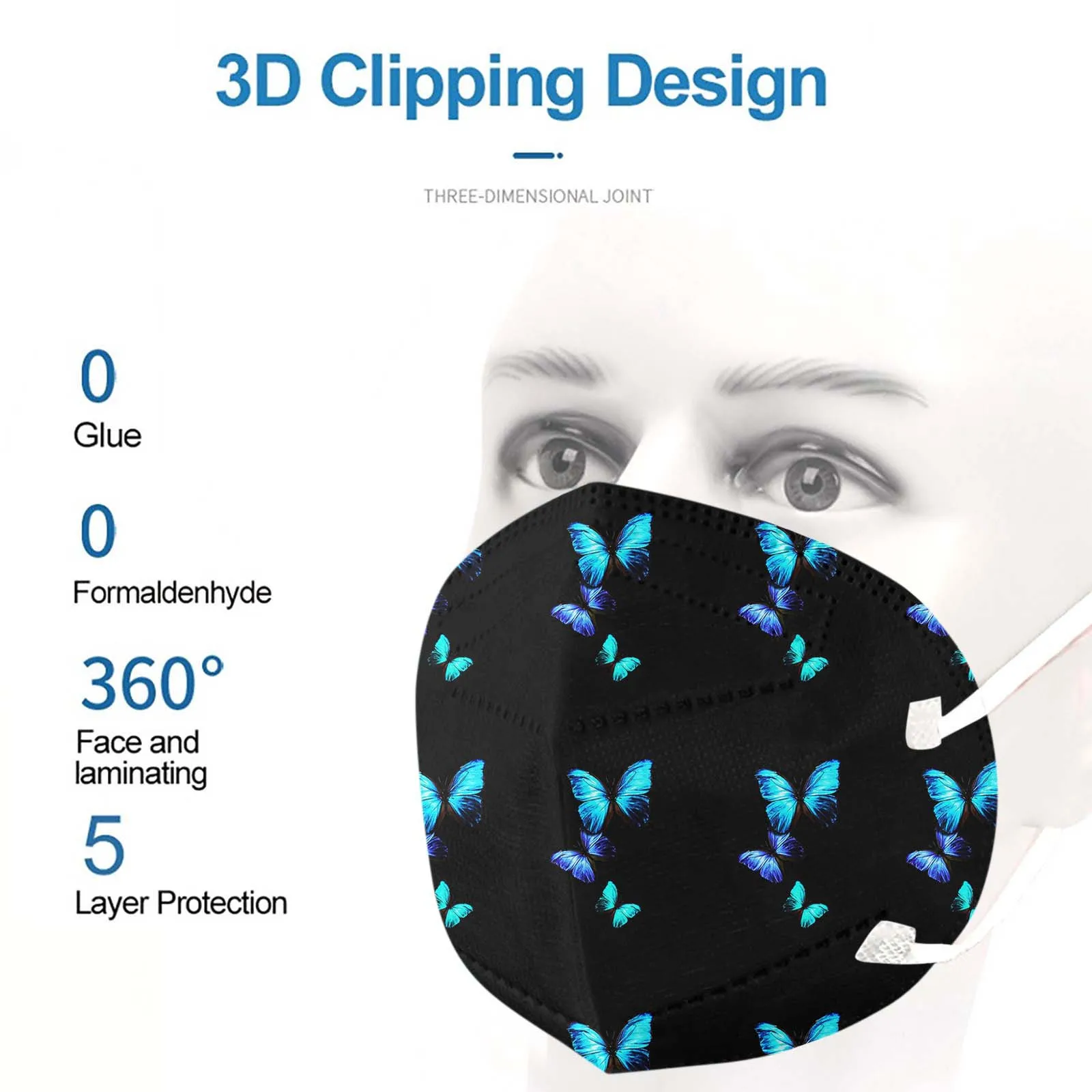 5-100 шт., защитная маска FFP2 с бабочками, модная черная маска для...