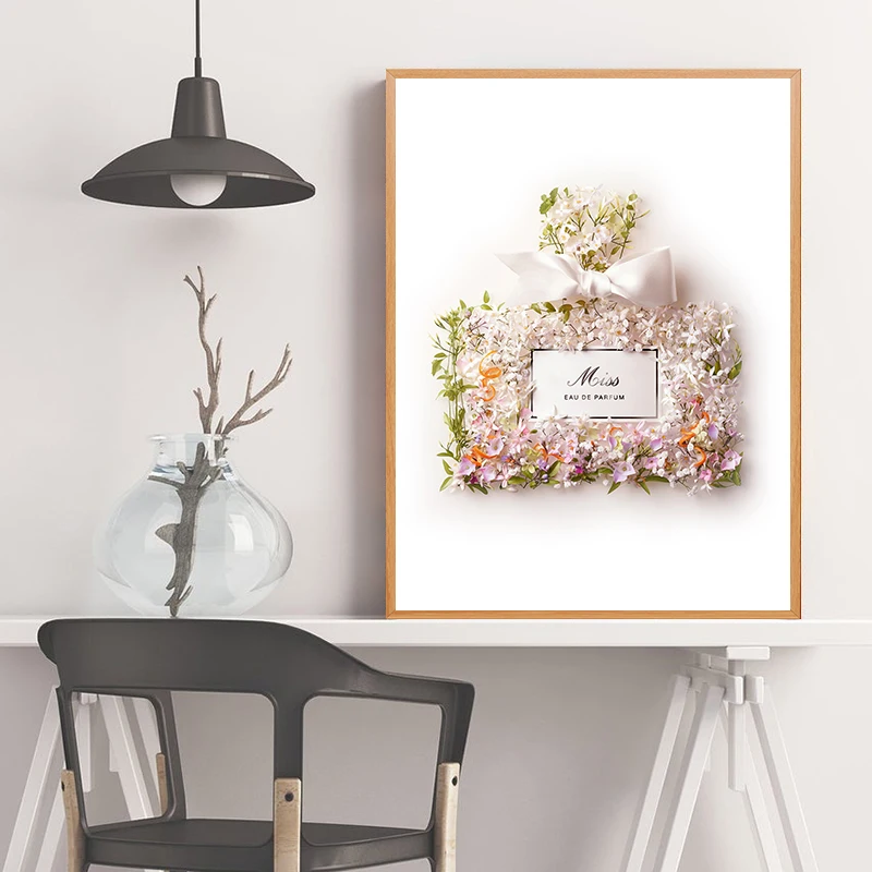 Модные Розовые духи, Цветочная бутылка, настенное искусство, холст, постеры, принты, мисс Цветущий букет, украшение для дома