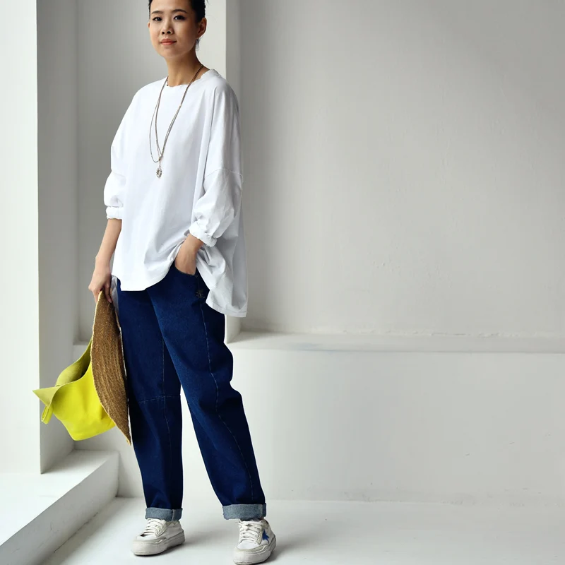 Повседневная Свободная и удобная футболка с круглым вырезом MICOCO T1206C