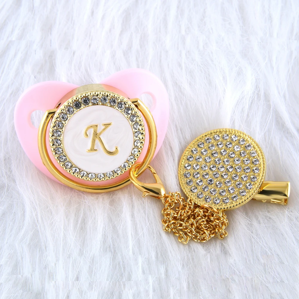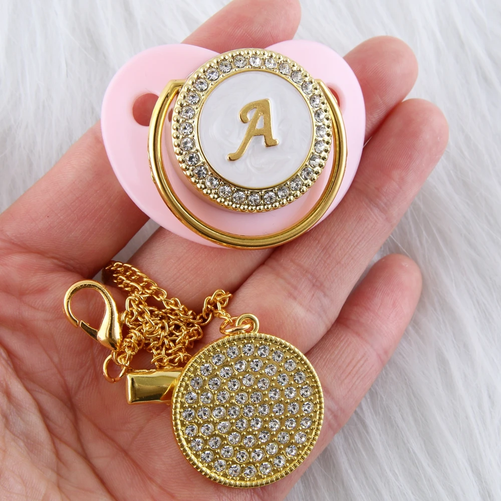 Стильный, с блеском золота соски-пустышки с Стразы 26 букв с гравир...