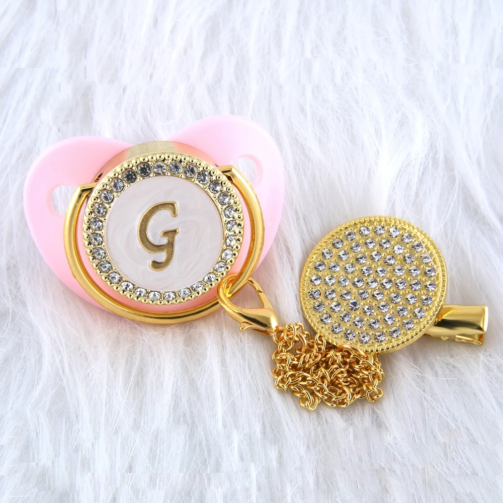 Роскошные золотые 26 инициалов разы Детская Соска с зажимами Chupet...
