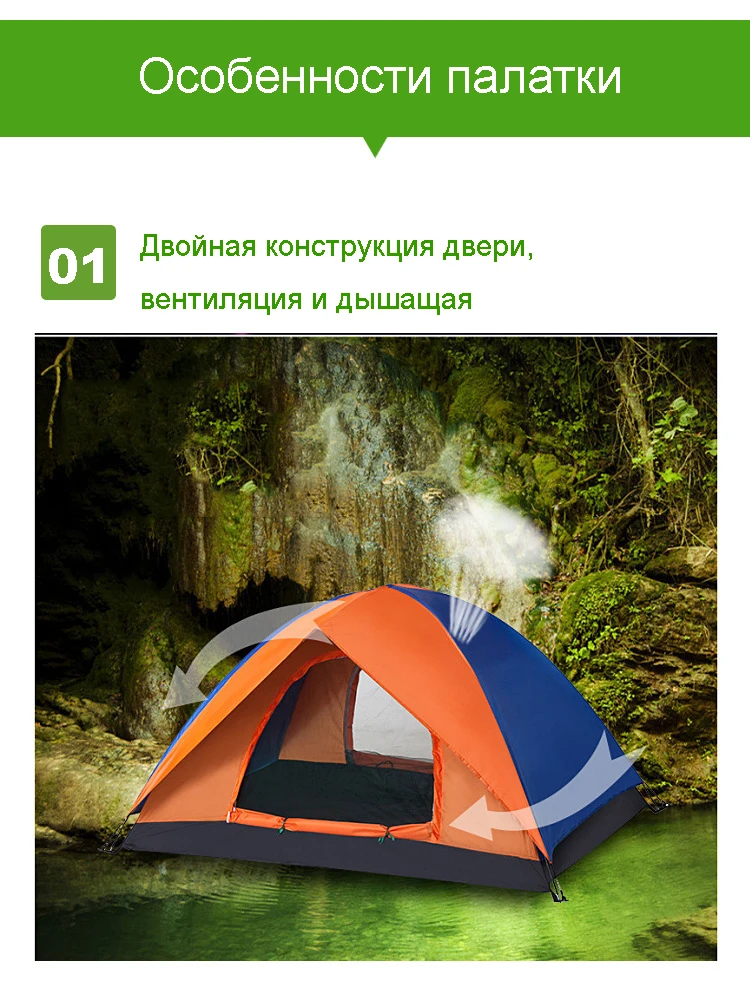 Ветрозащитная палатка для кемпинга, двойная Водонепроницаемая уличная туристическая пляжная туристическая палатка с защитой от ультрафиолета, семейная палатка для 3-4 человек