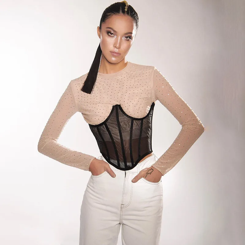 Сексуальный сетчатый корсет CHRONSTYLE 2021, пояс без рукавов, модн...