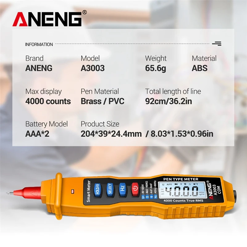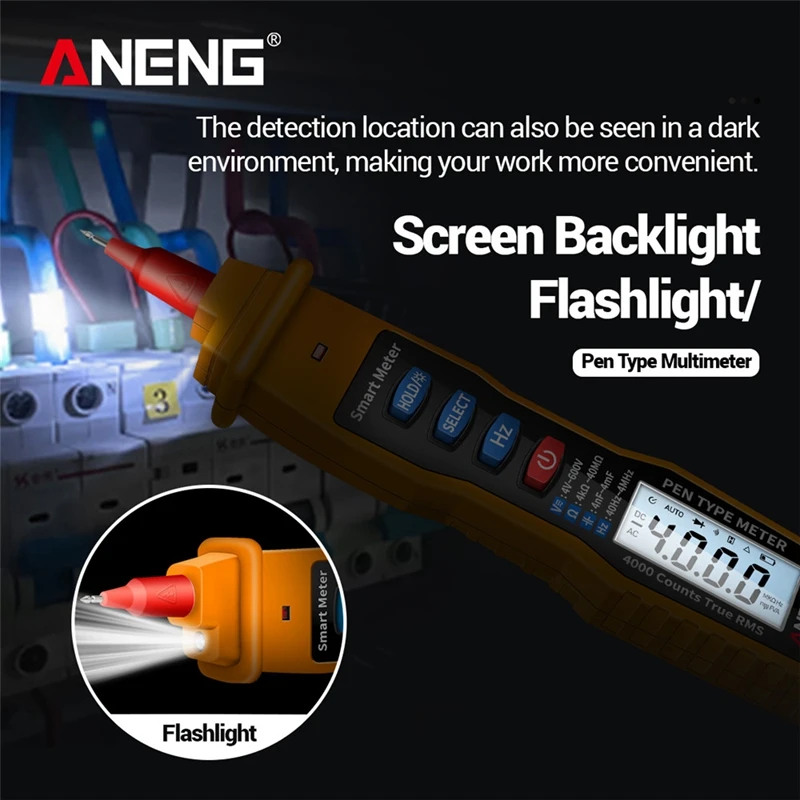 Цифровой мультиметр ANENG A3003 в виде ручки, 4000 отсчетов, бесконтактный Тестер переменногопостоянного напряжения, сопротивления, емкости, Гц