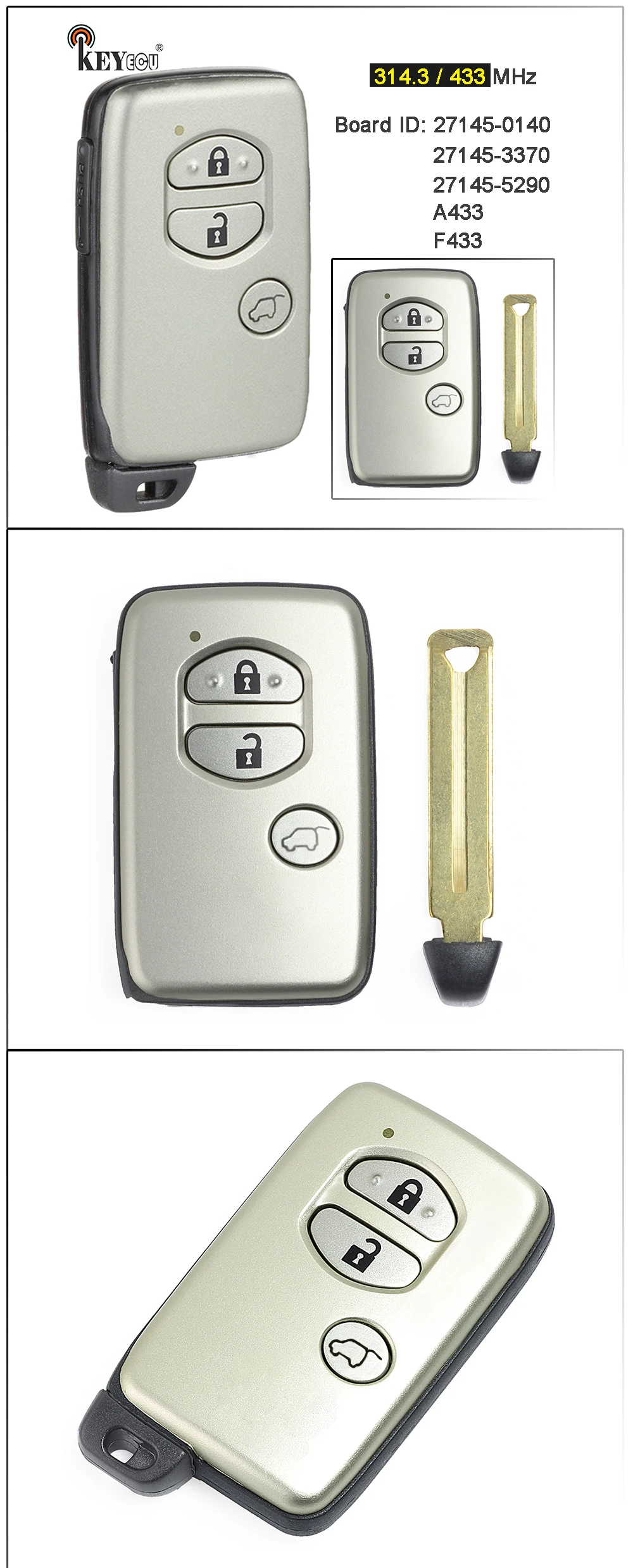 Пульт дистанционного управления KEYECU A433 F433 27145-0140 27145-3370 27145-5290 для Toyota Prado Venza
