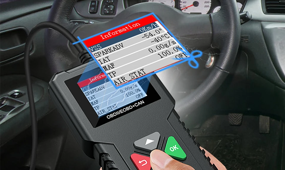 Экран: 2,4 дюймов TFT Цвет ЭкранПитание: с помощью автомобильного тестера через интерфейс OBD2Подходящий автомобиль: 12 В бензиновые или дизельные автомобилиРазрешение: 320*240