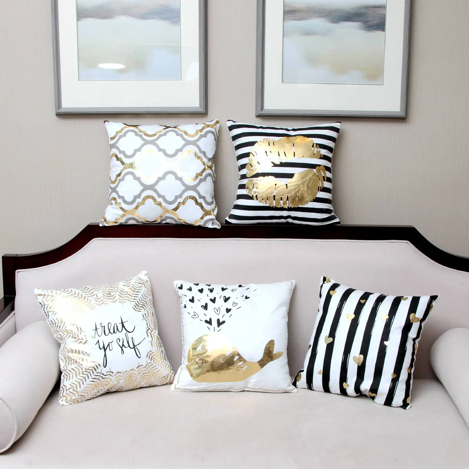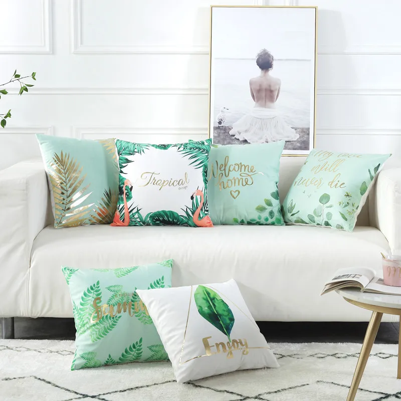 Чехол для подушки, с принтом золотых листьев, в стиле тропических растений, для домашнего декора, замшевый чехол для дивана, наволочка для диванной подушки