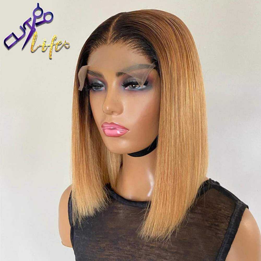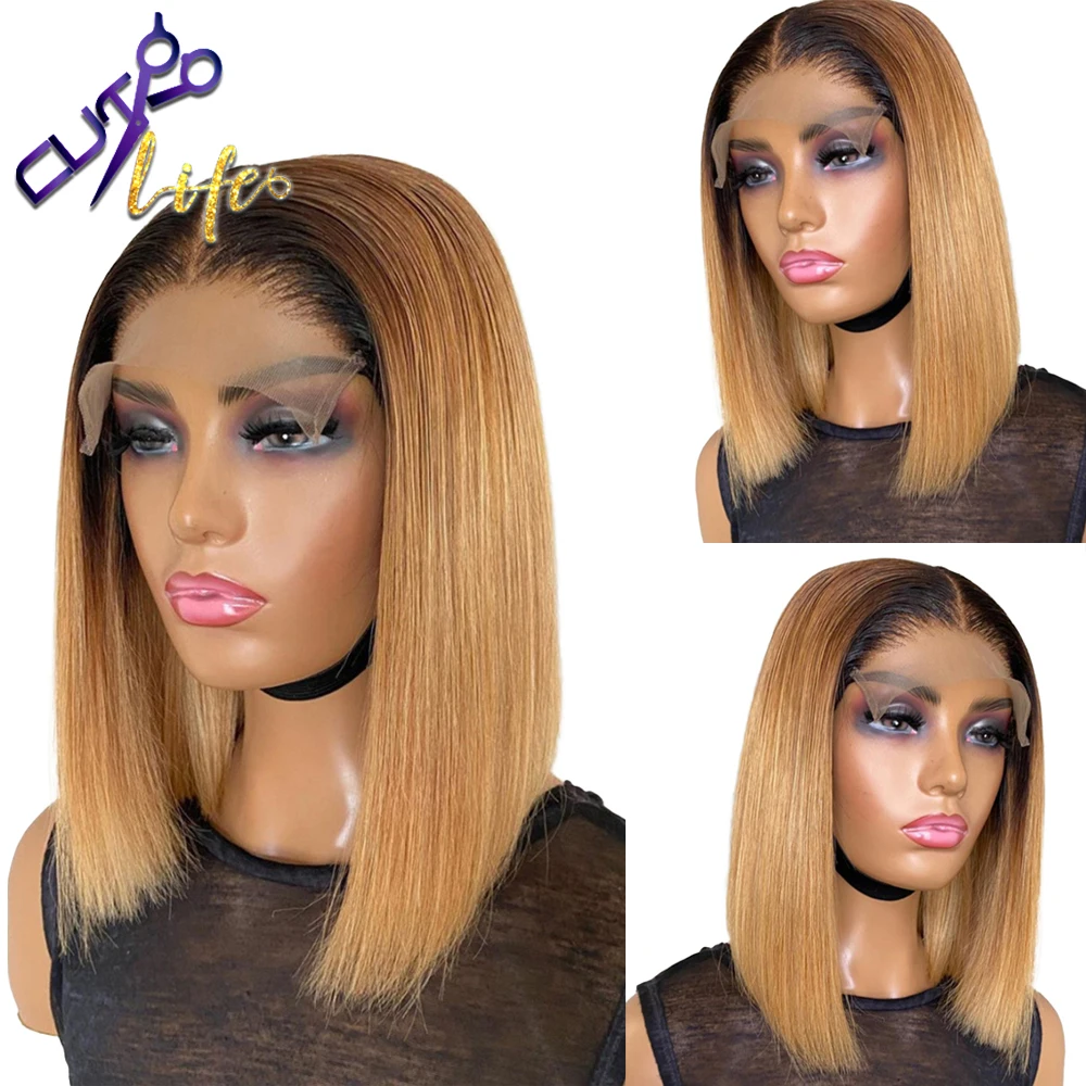 Короткий парик Боб, дешевый парик на сетке с эффектом омбре спереди, медовый блонд, парик на сетке из человеческих волос, парики для черных женщин плотностью 150% 250%