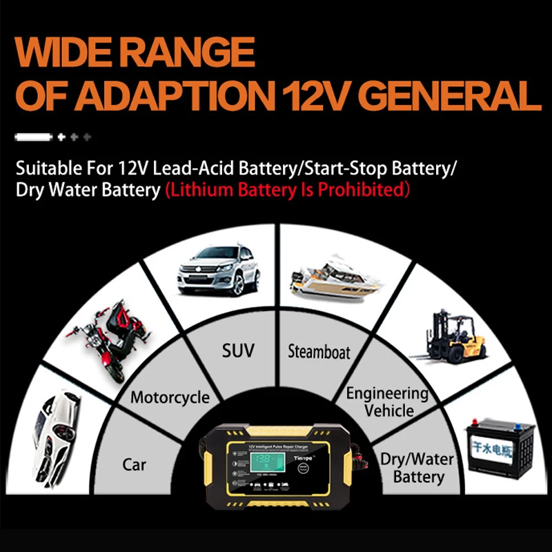 12v 6a автомобильное зарядное устройство, сенсорный экран, импульсный ремонт, ЖК-дисплей для авто, мото быстрая зарядка, влажный, сухой, свинцово-кислотный, цифровой ЖК-дисплей