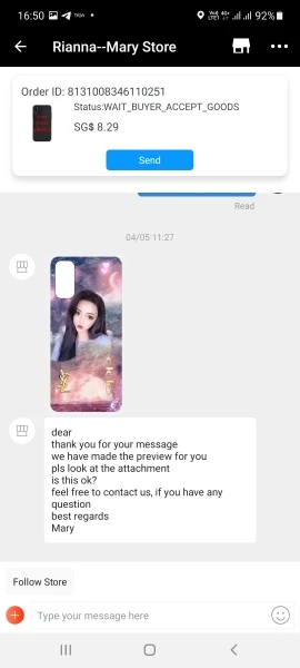 чехол отлично подошёл к телефону, очень удобные лёгкие кнопки по бокам рисунок хороший, качество отличное) я отправляла фотографию и свой макет, как я хочу, чтобы руки были на чехле, продавец сделал более качественную картинку отправил мне на одобрение. через 3 дня посылку отправили, я оплатила доставку ~60 рублей, и вот тут загвостка. чехол приехал достаточно быстро, я боялась не успеть до определенного дня, но чехол никак не отслеживался, вот это мне не очень понравилось даже в платной доставке