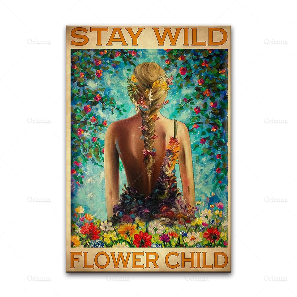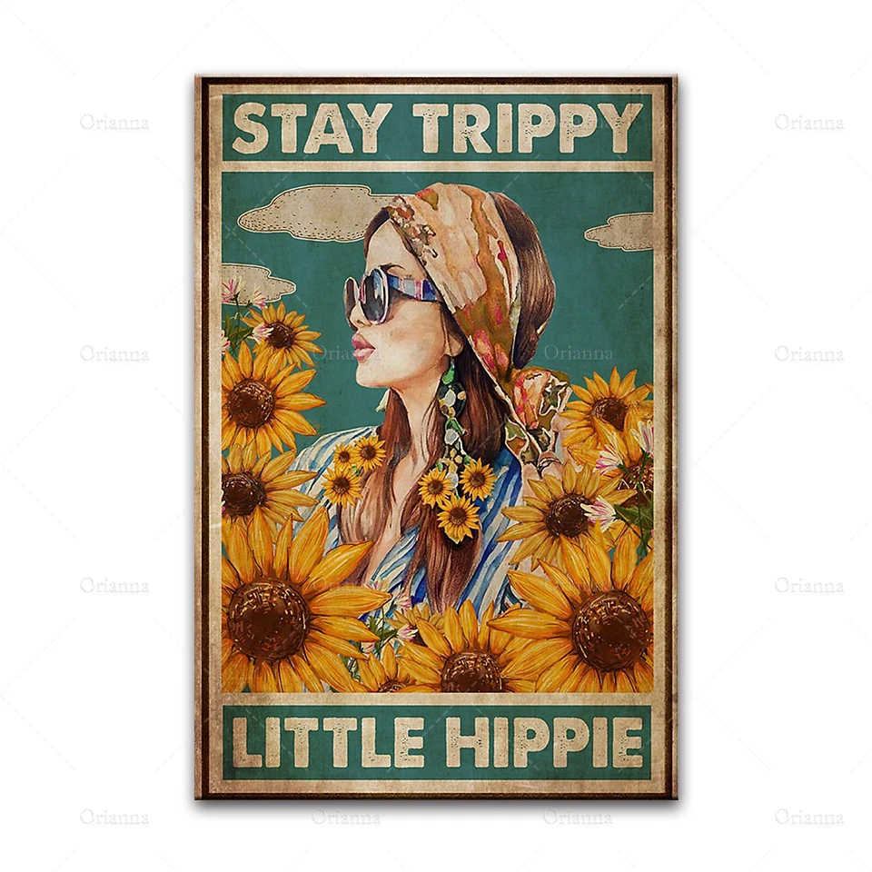 Настенный плакат с 2 цветами для девочек Stay Trippy, настенный плакат с цветами для девочек Stay Wild Flower, Декор для дома в стиле хиппи
