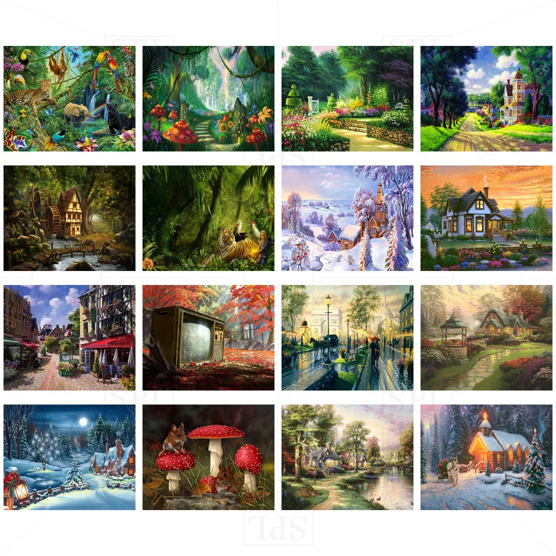 Алмазная мозаика сделай сам, рисование пейзажа, гор, виллы, замка, ...