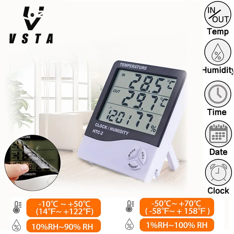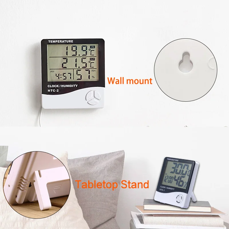 ЖК-дисплей электронные цифровые Температура измеритель влажности термометром и гигрометром декоративные часы для дома и улицы часыПогодная станция с HTC-1 HTC-2