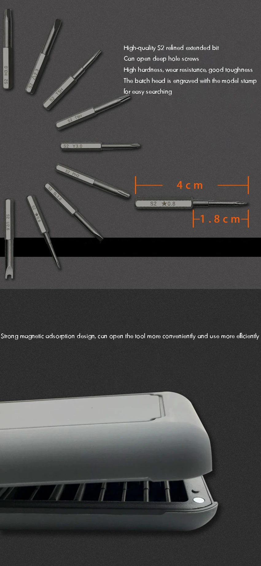 Набор прецизионных отверток 30 в 1 с длинными битами S2, Магнитный чехол, профессиональный набор инструментов для вскрытия и ремонта телефонов и часов
