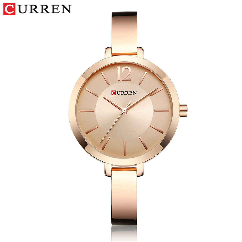 Часы CURREN женские кварцевые ультратонкие, модные Романтические из нержавеющей стали, золотистые