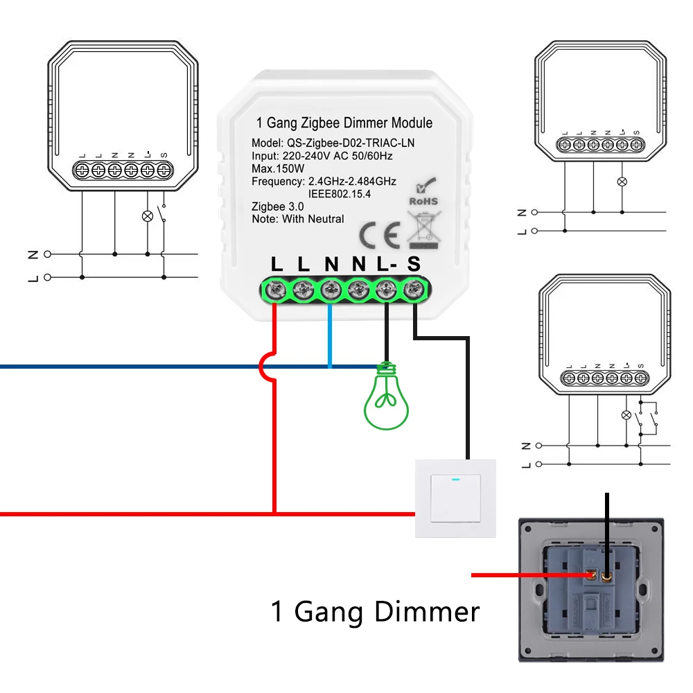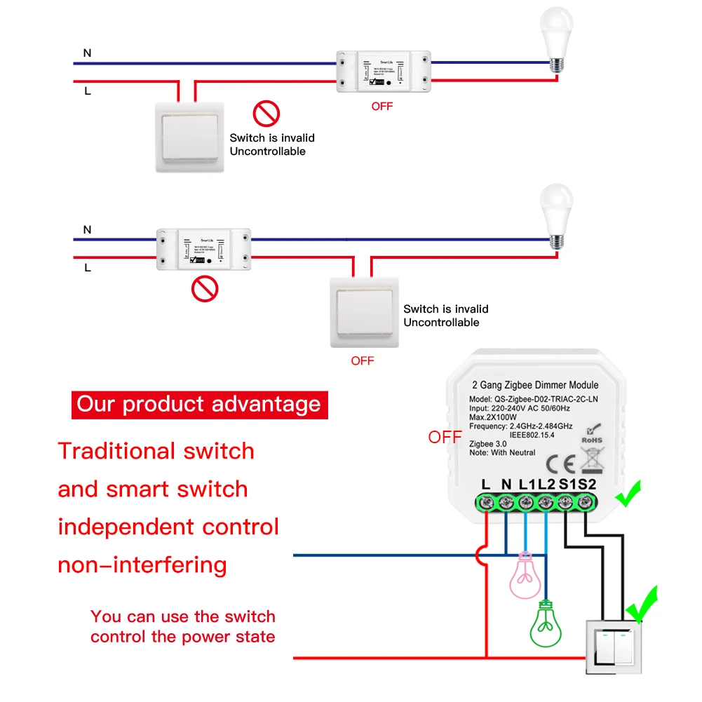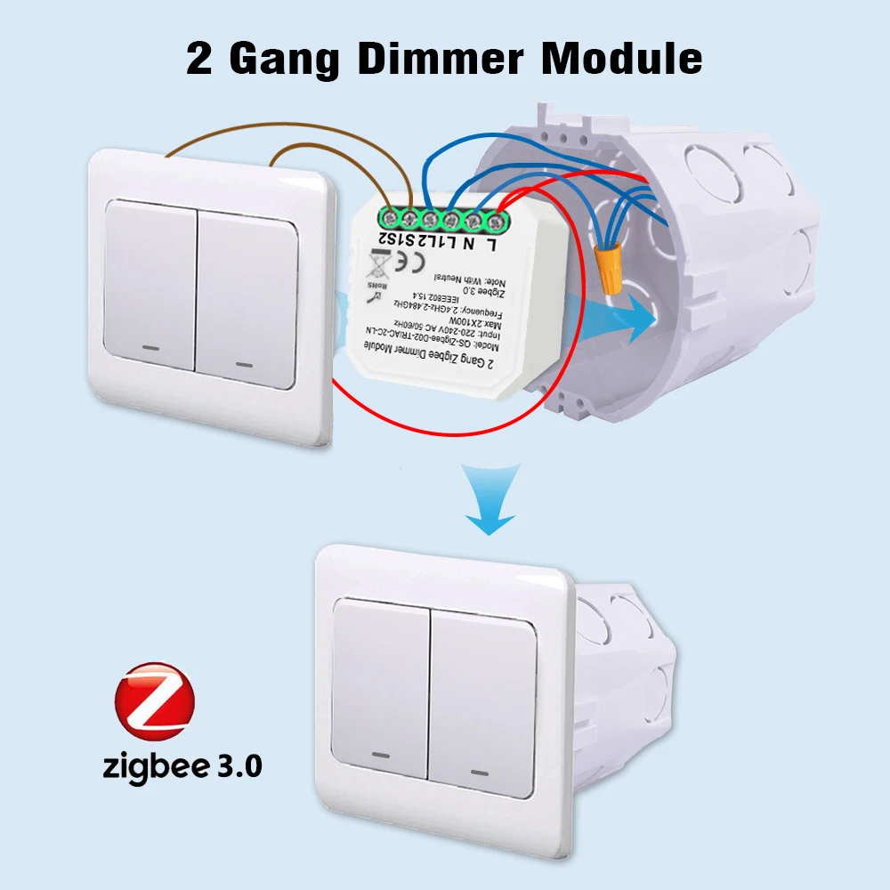 Особенности продукта:1. Этот умный модуль Tuya ZigBee 3,0 разработан специально с протоколом ZigBee 3,0, совместим с Tuya ZigBee hub, чтобы реализовать всю связь вашего дома, действительно хорошая замена нестабильного Wi-Fi. Протокол ZigBee 3,0 с мини-дизайном костюмы для ЕС/настенный переключатель стандарта Великобритании коробка, И легко спрятать его в вашу скрытую настенная коробка переключателей вашего традиционного диммера без влияния на ваш оригинальный стиль украшения, чтобы сделать его умным, предоставляя вашим устройствам максимальную мощность включения/выключения, умный макияж и конвертируйте большинство любых совместимых продуктов в умные; Традиционный диммер и этот умный модуль могут работать независимо без помех. (Примечание: Этот модуль подходит только для переключателя сброса, см. Рис. 2 для получения подробной информации.)