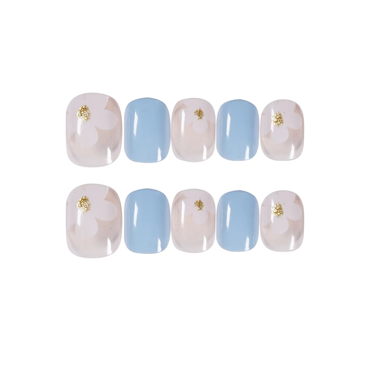 GAM-BELLE белые накладные ногти с цветочным узором свежий синий глянцевый короткий полный Чехол искусственные ногти с клеем изящный маникюр