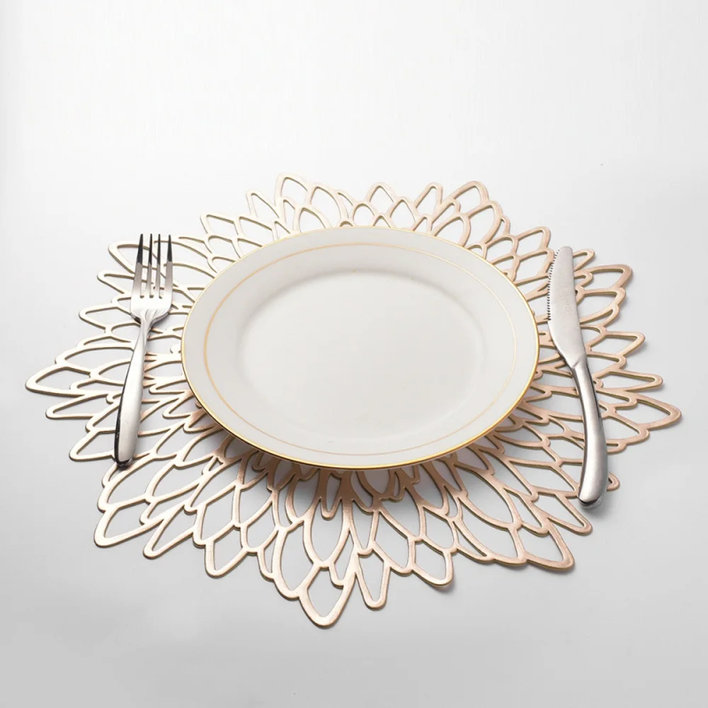 Салфетки из ПВХ, выдолбленные, с золотым тиснением, в форме цветка ...