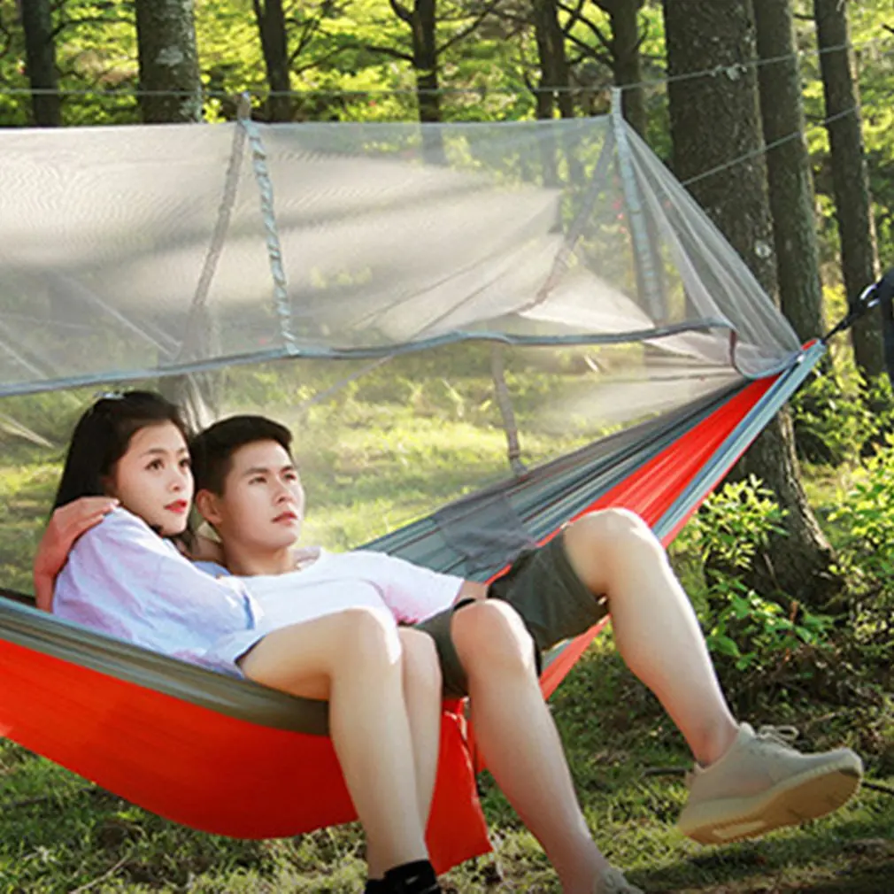 Портативный туристический гамак с москитной сеткой, на 1-2 человек, высокопрочная Парашютная ткань, подвесная кровать, качели для сна для охоты и отдыха на открытом воздухе