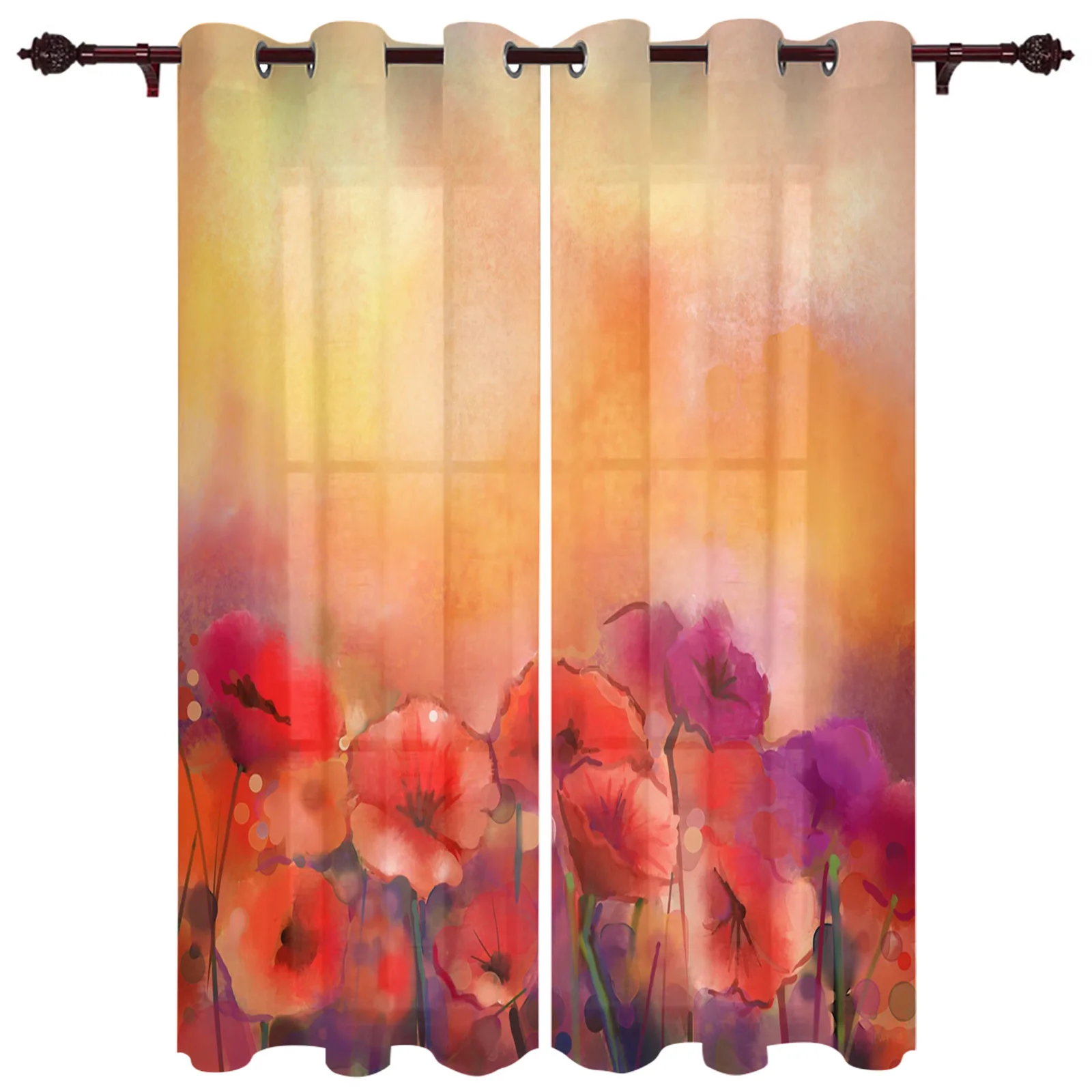 Занавески на окна, акварельные занавески с изображением мака, цветов, для детской комнаты, гостиной, кухни
