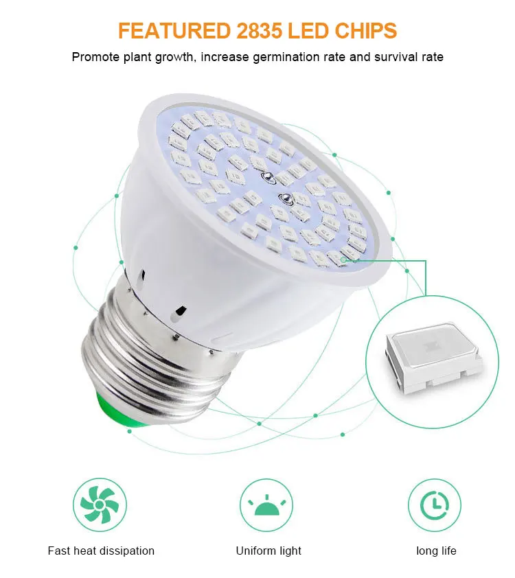 48/60/80 бусины лампы Светодиодная лампа для выращивания растений E27 заполняющий свет для растений суккулентный зеленый цвет растений быстрорастущий промышленный свет