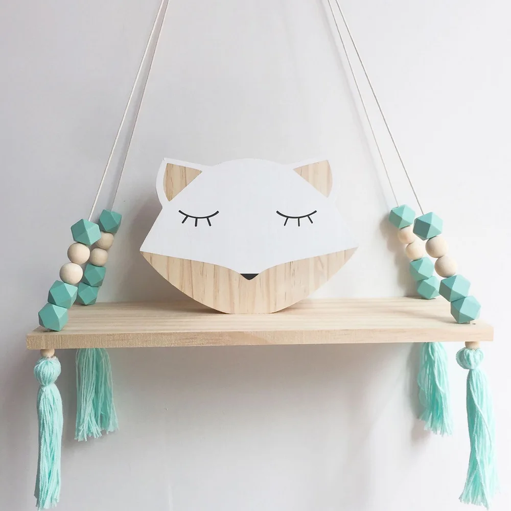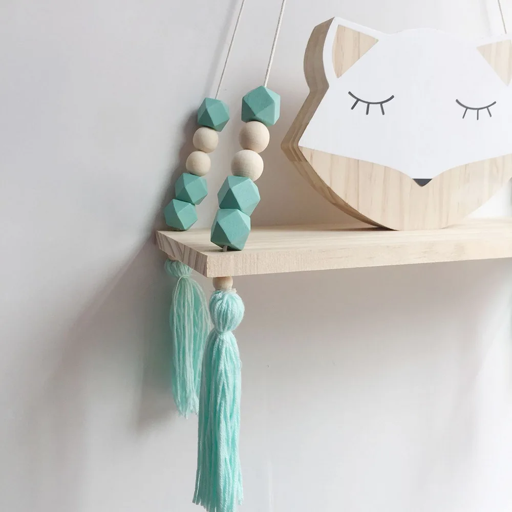 Настенная деревянная полка в скандинавском стиле, с цветными бусинами и кисточками, для хранения, для детской комнаты, для магазина детской одежды