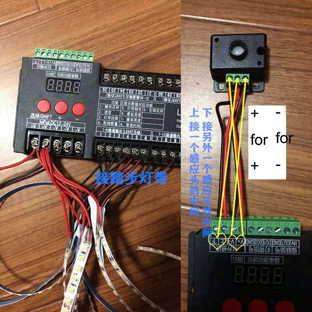 * В нижеследующих словах вместо цифр, пожалуйста, имейте в виду, спасибо.1. При включении контроллера будет отображаться **-L, это скорость скачки, которую следует установить на перила или стену, вы можете нажать speed +, или скорость-легко регулировать скорость бега.2. Если вы хотите изменить больше эффекта, нажмите set, чтобы выбрать опции, пожалуйста.3. Когда вы нажимаете SET, он отображает L ***, это пиксель лошади, нажмите SPEED +/ SPEED-для настройки. Если вы используете ленсветильник 20IC/m (60 светодиодов/м), она может проехать около 40 м в длину.4. При отображении LP **, это цвет света для скачек, нажмите скорость +/скорость-для настройки, есть белый-красный-зеленый-синий-желтый-фиолетовый-голубой, И возможны автоматические изменения на выбор.5. При отображении LH ** это светильник для скачек, нажмите скорость +/скорость-для настройки.6. Когда отображается F ***, это Настройка лестницы, нажмите скорость +/скорость-для регулировки, сделайте то же количество на вашей лестнице.7. Когда отображается FP **, это режим светильник лестницы, он пока только один, его нельзя изменить.8. Когда отображается FH **, это скорость освещения лестницы, нажмите скорость +/скорость-для регулировки, количество поднимается, скорость уменьшается.9. Когда отображается E ***, это время задержки после полного светильник, это не реальное время жизни, вы можете попробовать настроить его по скорости +/скорости-.Светильник легкий пиксель для скачек (L ***) * скорость бега (LH **) = количество лестниц (F ***) * скорость освещения (FH **)Нажмите set снова на дисплей **-L, он автоматически сохранит настройки, которые вы сделали. При перезагрузке системы настройки будут применяться.