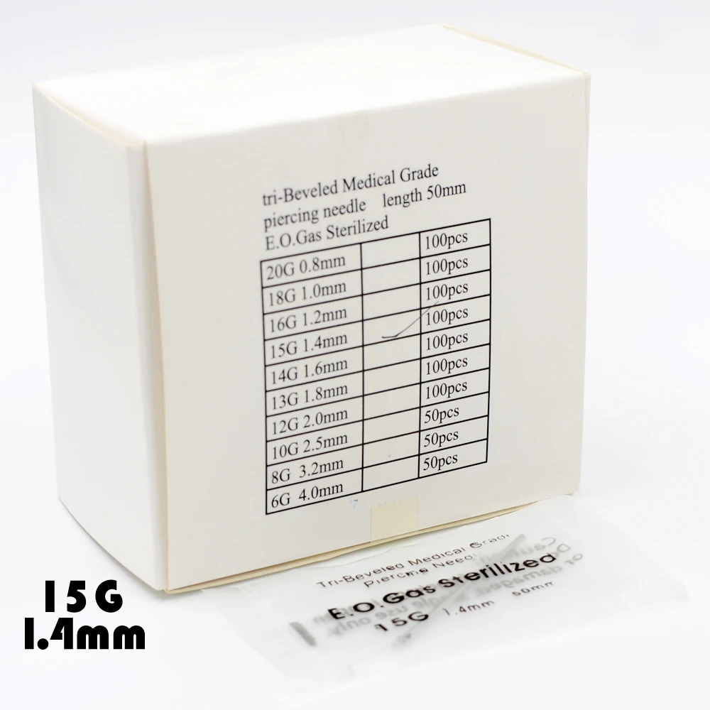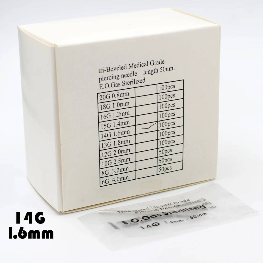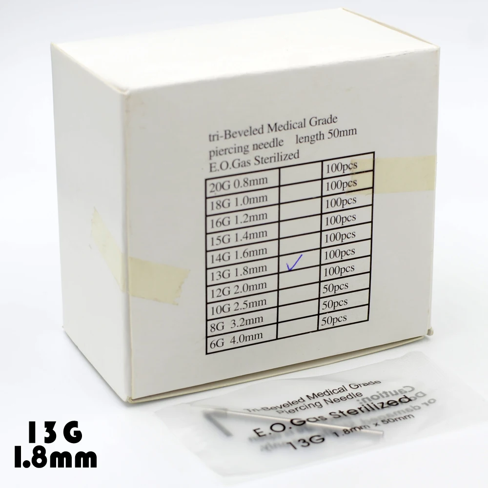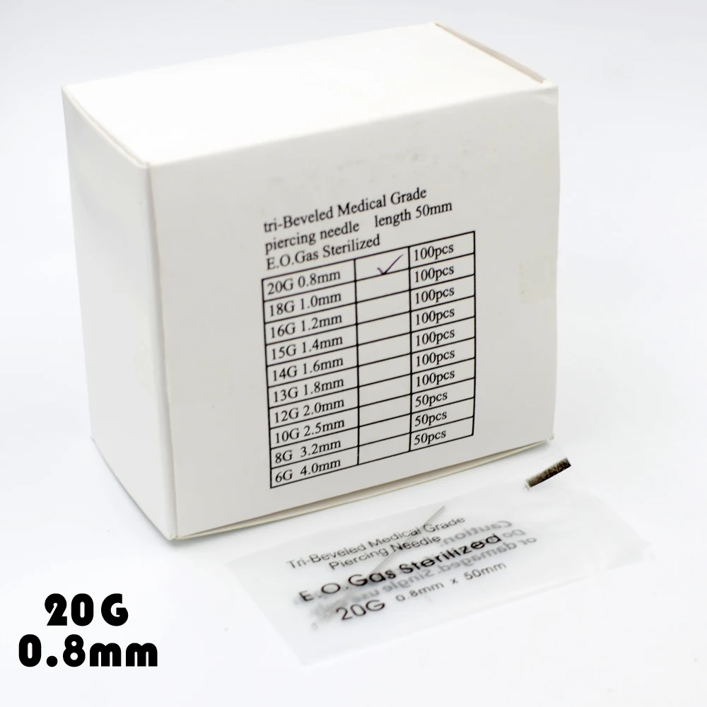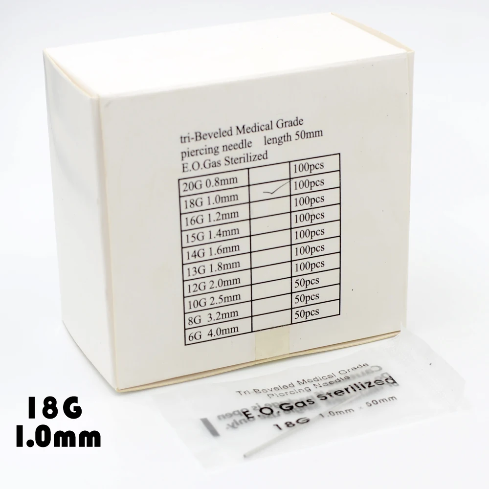 100 шт одноразовые стерильные тела пирсинг иглы медицинские иглы для татуировки для пупка для сосков, губ кольцо пупка комплект хирургические Сталь инструменты