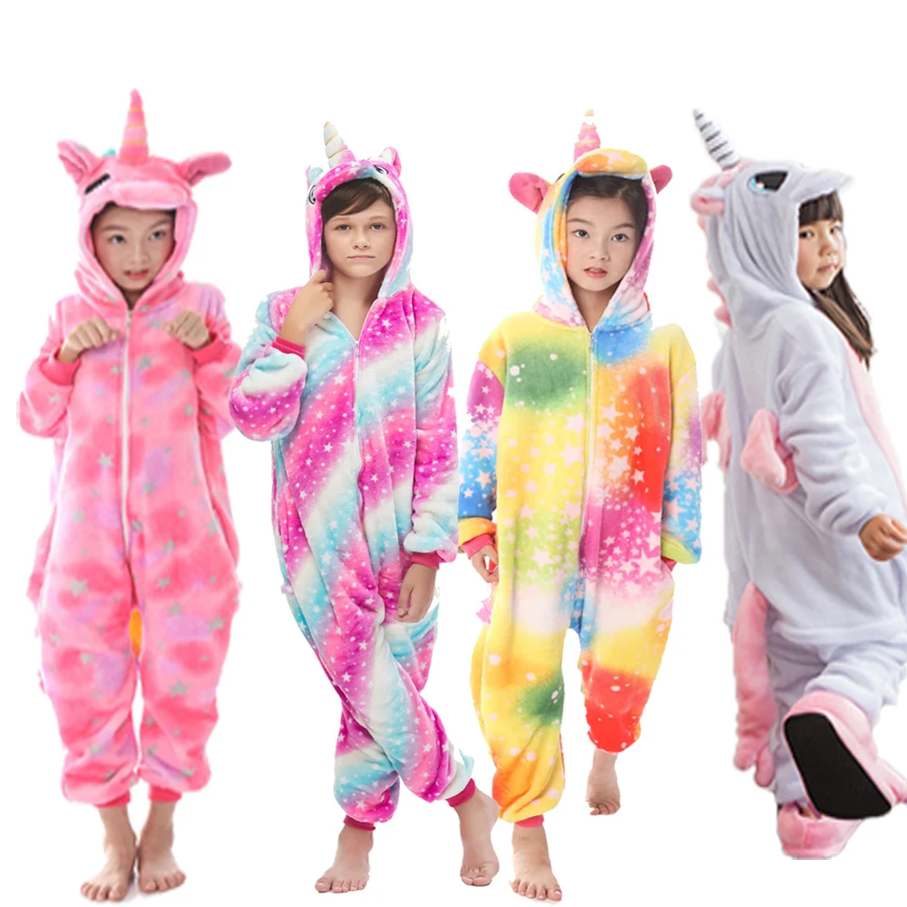Детские пижамы-кигуруми в виде единорога, детские пижамы-комбинезоны в виде животных, детский зимний костюм для мальчиков и девочек, единорог