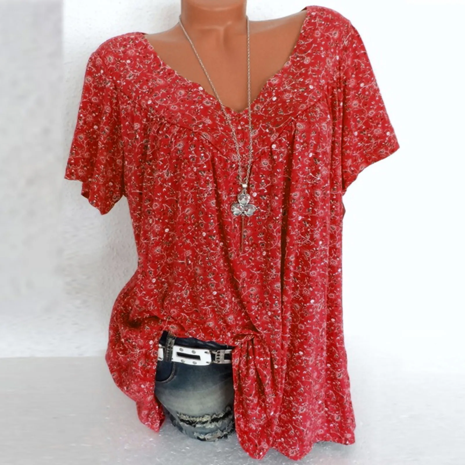 Блузка женская с коротким рукавом, размера плюс туника с V-образным вырезом и цветочным принтом, Элегантная Модная рубашка, 5xl, лето 2021
