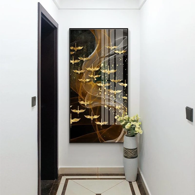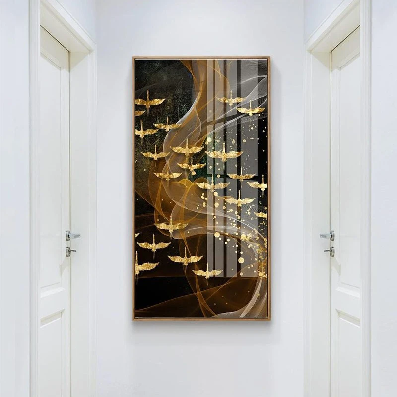 Абстрактная картина с изображением Золотой птицы, HD плакат, Настенная картина с золотой линией для гостиной, Современная Картина на холсте 4-29