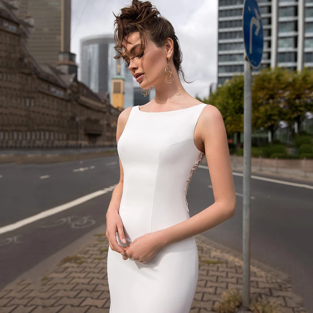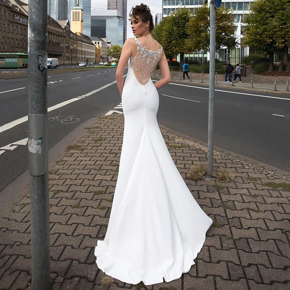 UZN Элегантное свадебное платье Русалка с глубоким вырезом и бисером, кружевные аппликации, атласное свадебное платье, сексуальное платье невесты с иллюзией сзади