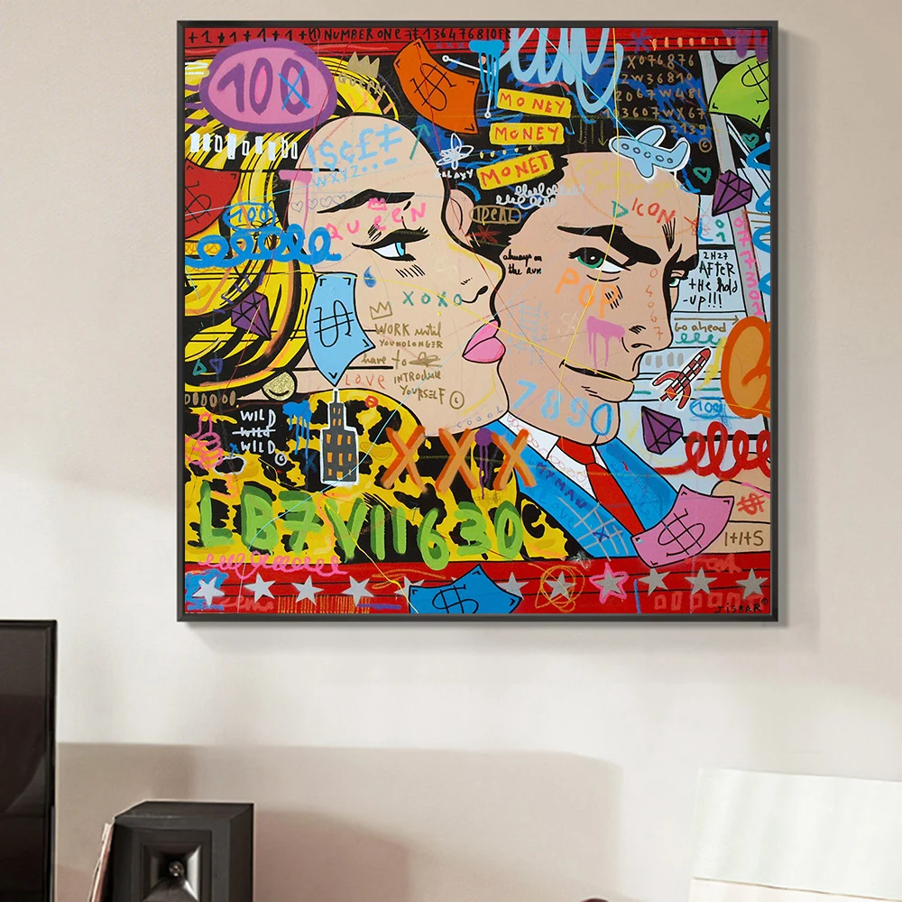 Поцелуи Металлическая Статуя холст живопись поп абстрактная стена и...