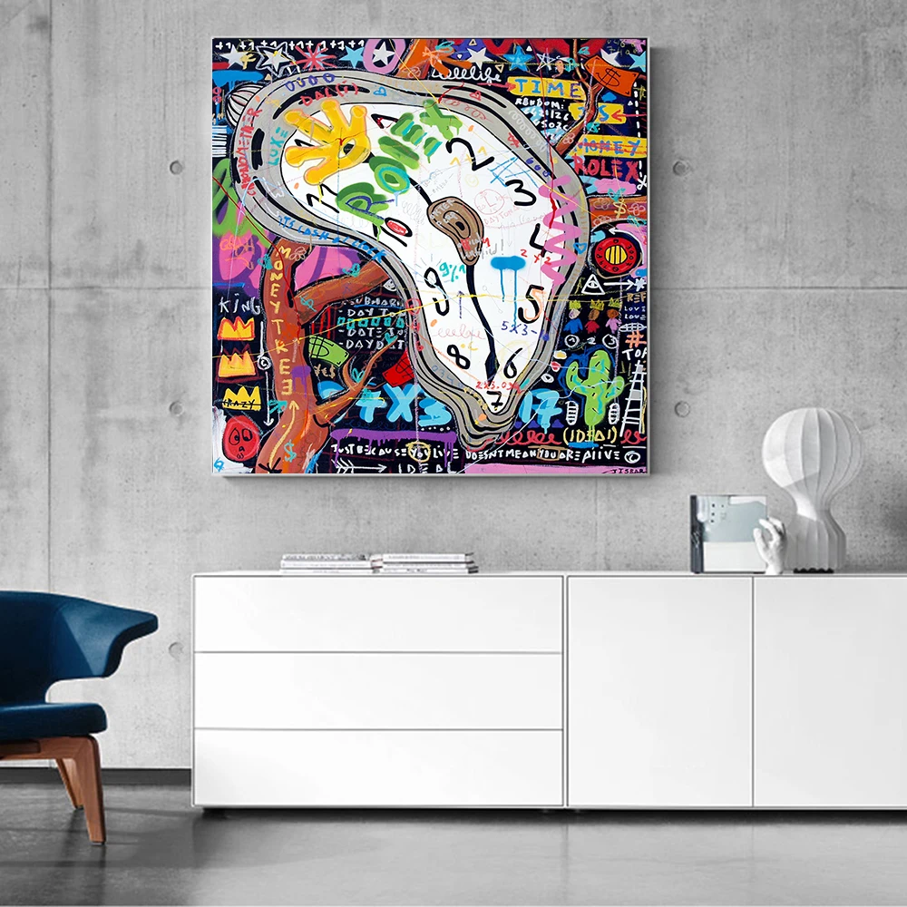 Граффити часы влюбленных Мона Лиза в стиле протестного уличного искусства Печать холст Картина абстрактный Рисунок настенная живопись Гостиная украшения дома постер