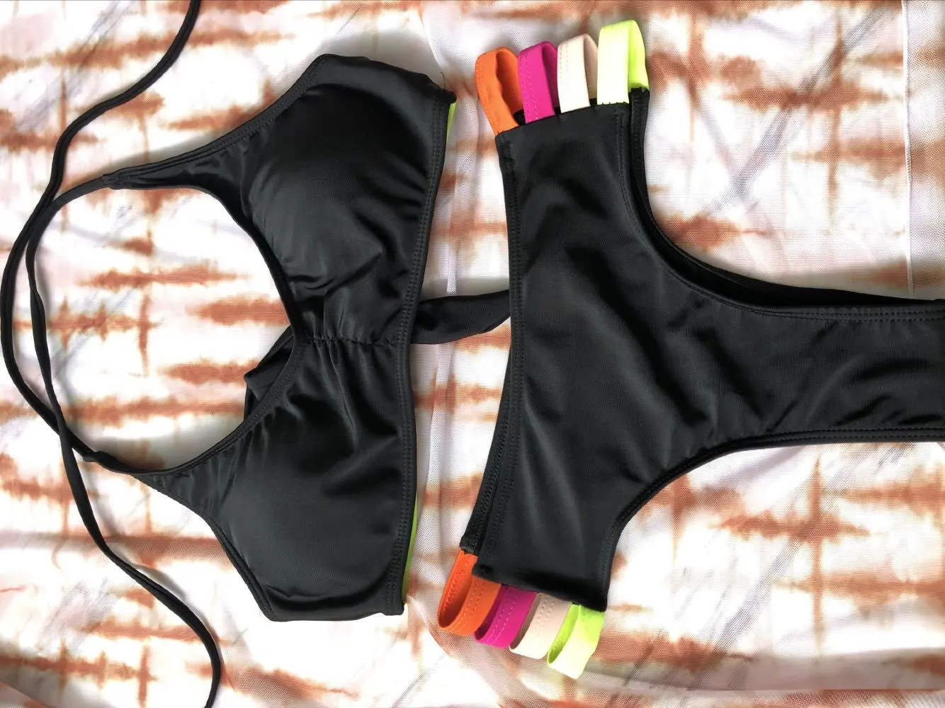 Черное Сетчатое бикини Tengweng 2022, сексуальный купальник-бандо с высокой талией, Женский комплект из 2 предметов, купальный костюм, женские пляжные купальники