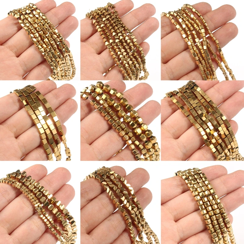 AAA + сохранение цвета Позолоченные гематитовые бусины натуральный камень круглые кубические свободные бусины для самостоятельного изготовления ювелирных изделий браслет 15''