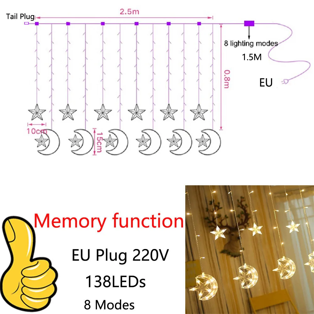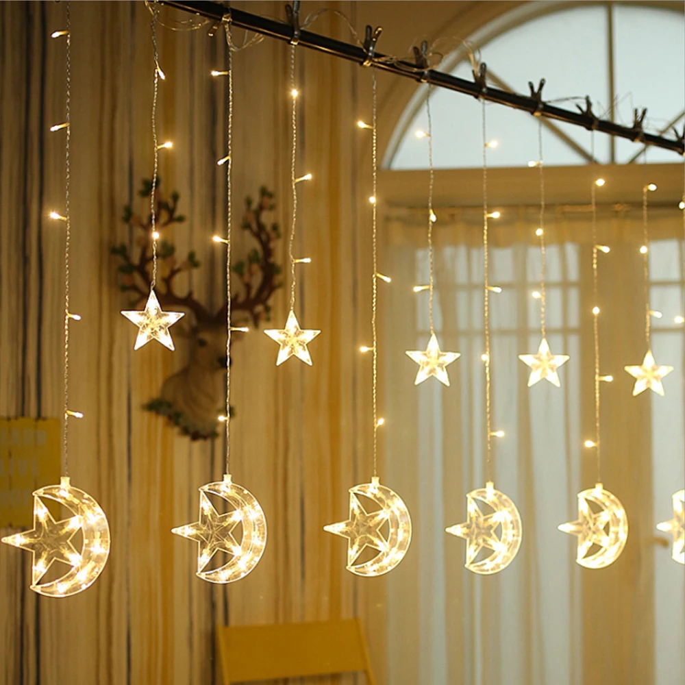 2,5 м Луна Звезда гирлянда светодиодная занавеска сказочная гирлянда светильник праздник Рождество светильник для свадьбы дома вечерние украшения на Рамадан