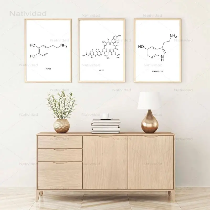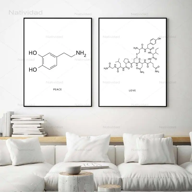 Мира любовь счастье молекулы настенное Искусство Холст плакат печать допамин окситоцин художественная живопись картина химия наука Декор подарок