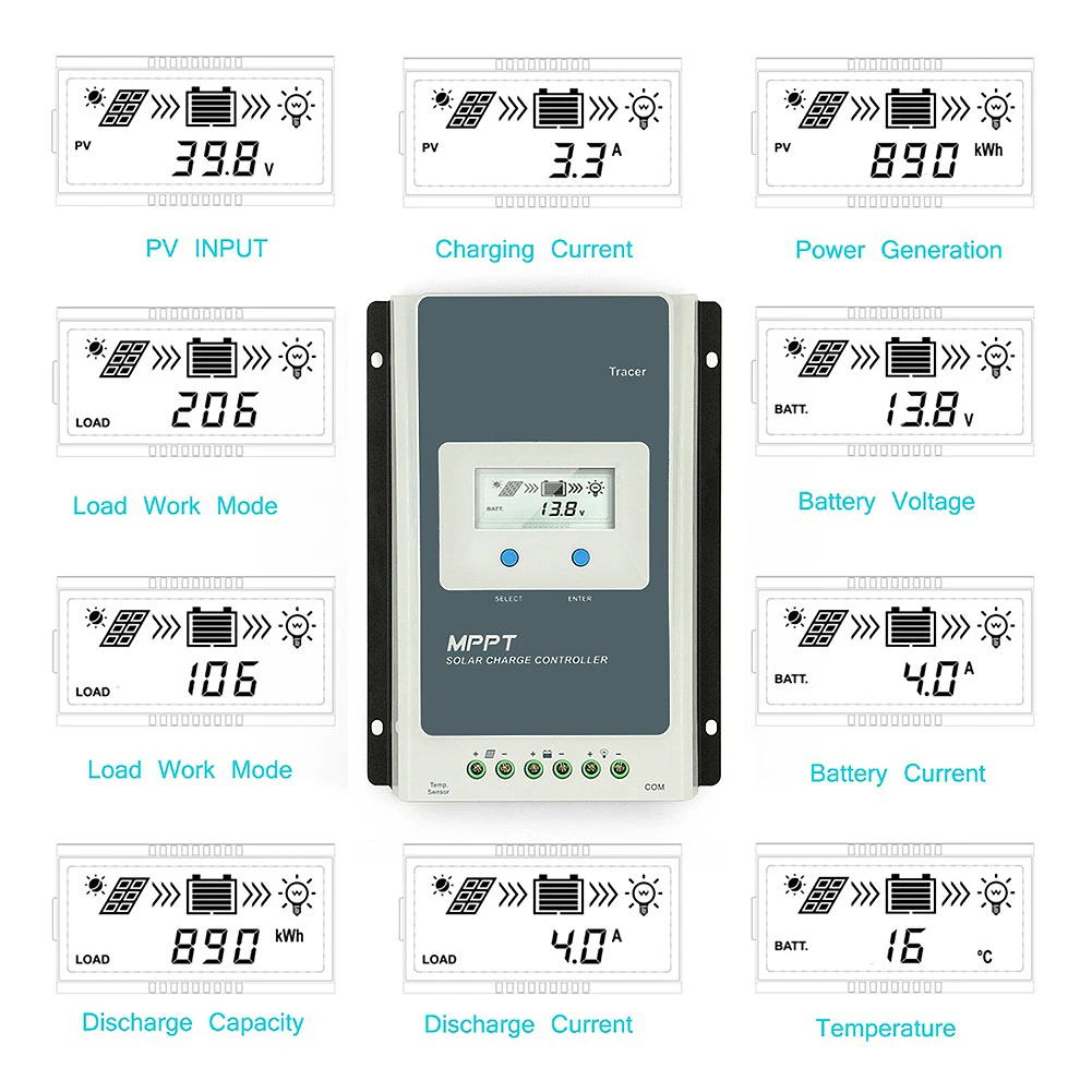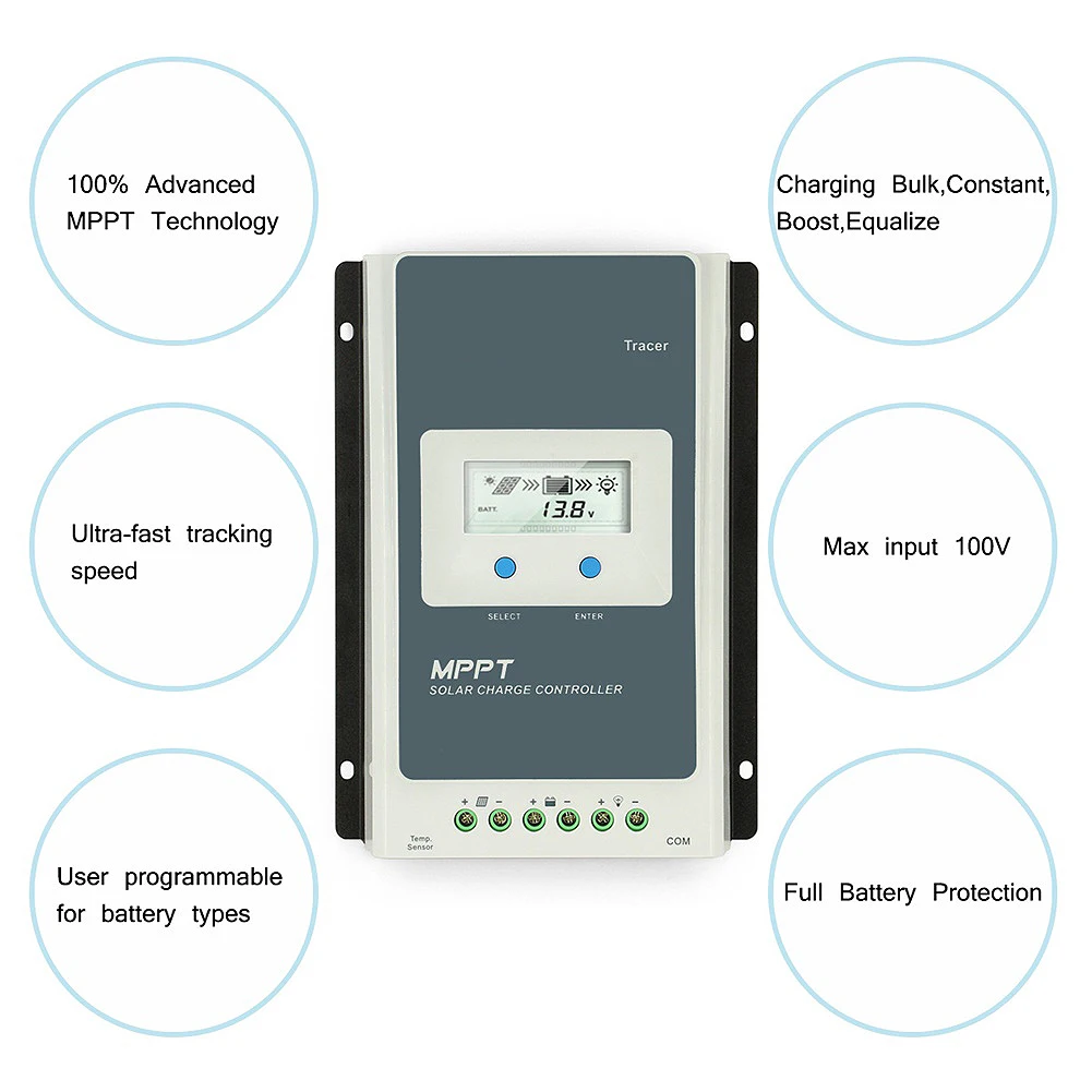 Контроллер заряда EPever Solar MPPT с ЖК-дисплеем, 10203040 А, 12 В24 В