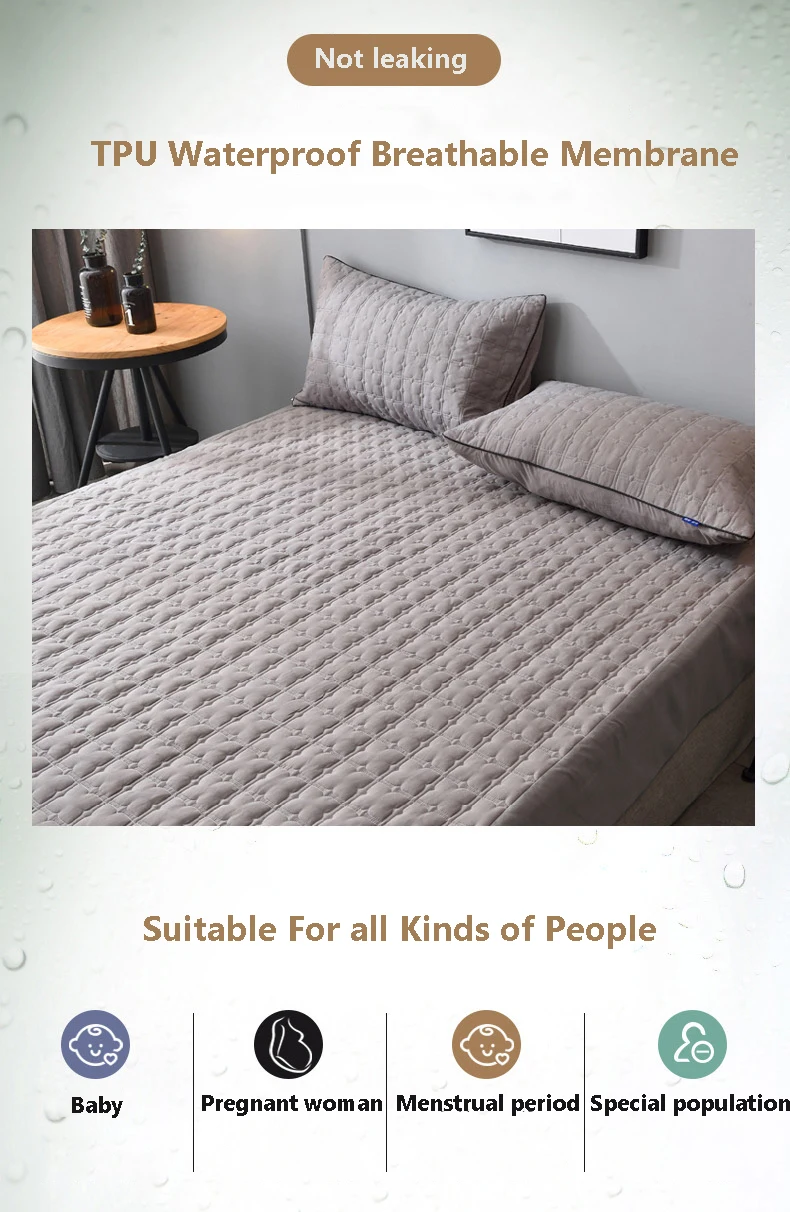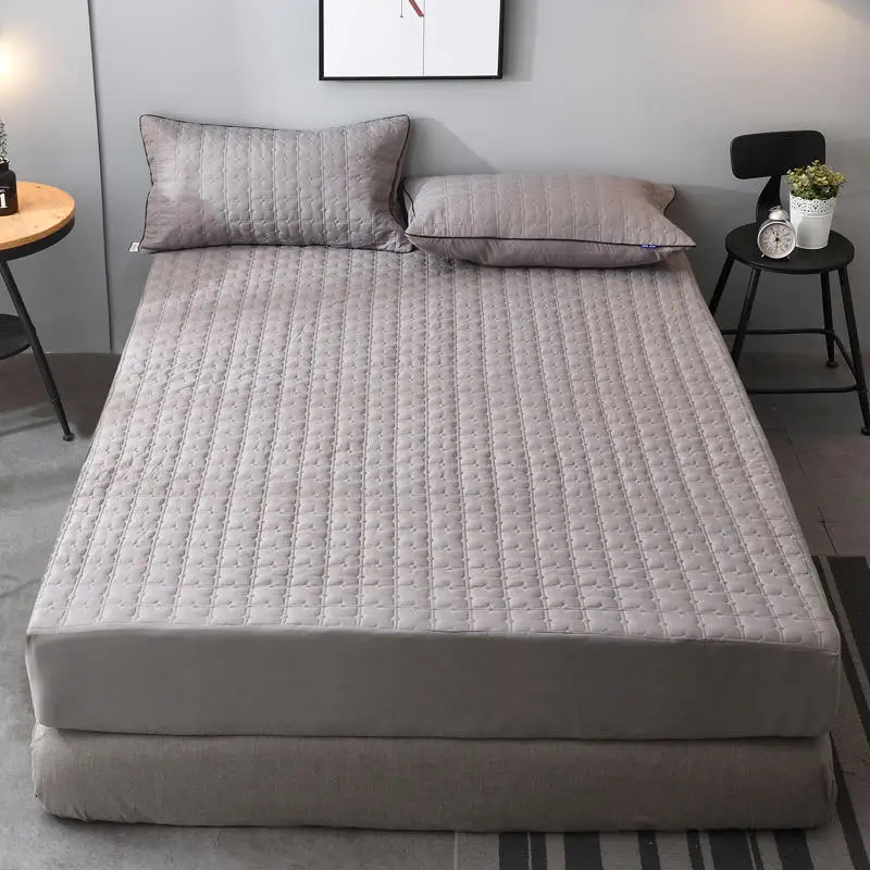 Водонепроницаемый стеганый чехол на матрас, протектор матраса King Queen, однотонная дышащая простыня, Комплект постельного белья
