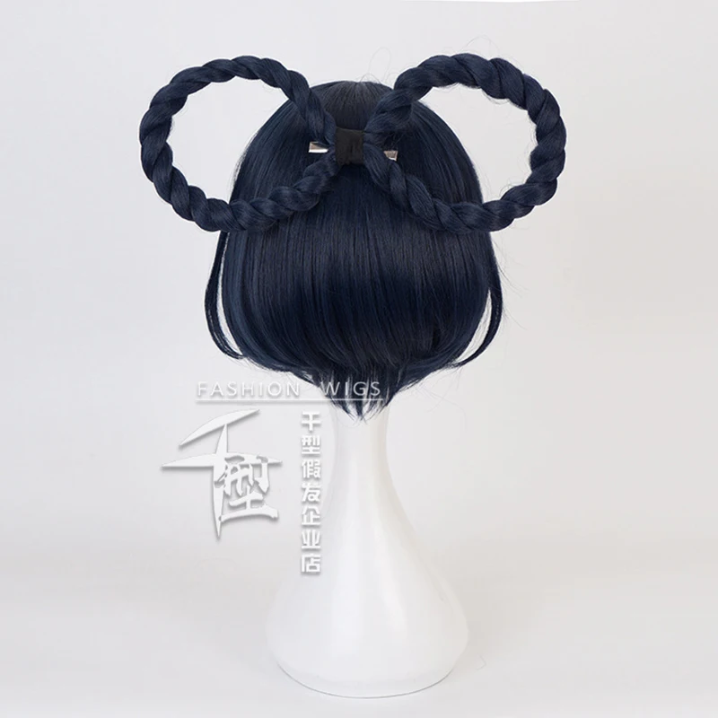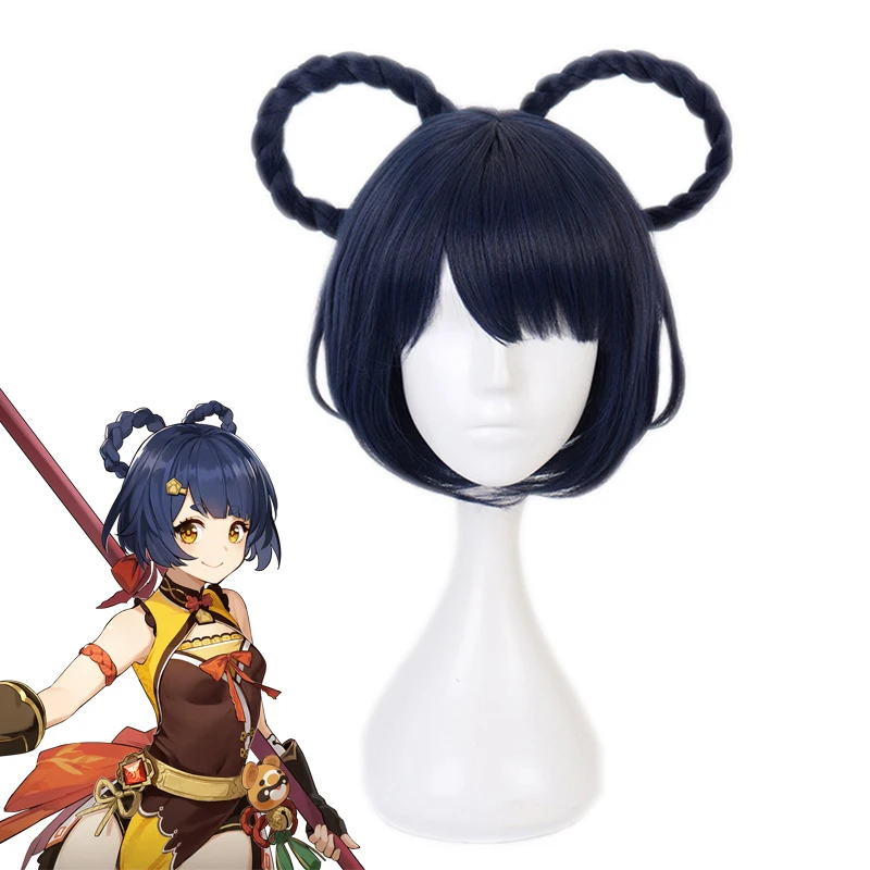 Парик с короткой косичкой Game Genshin Impact Xiangling, темно-синий, термостойкий для косплея костюма, из синтетических волос, Xiang Ling, женские парики