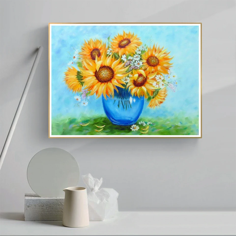 Алмазная 5D картина сделай сам в виде цветка подсолнуха Стразы, алмазная вышивка, мозаика из бисера, украшение для дома ручной работы, хобби, подарок