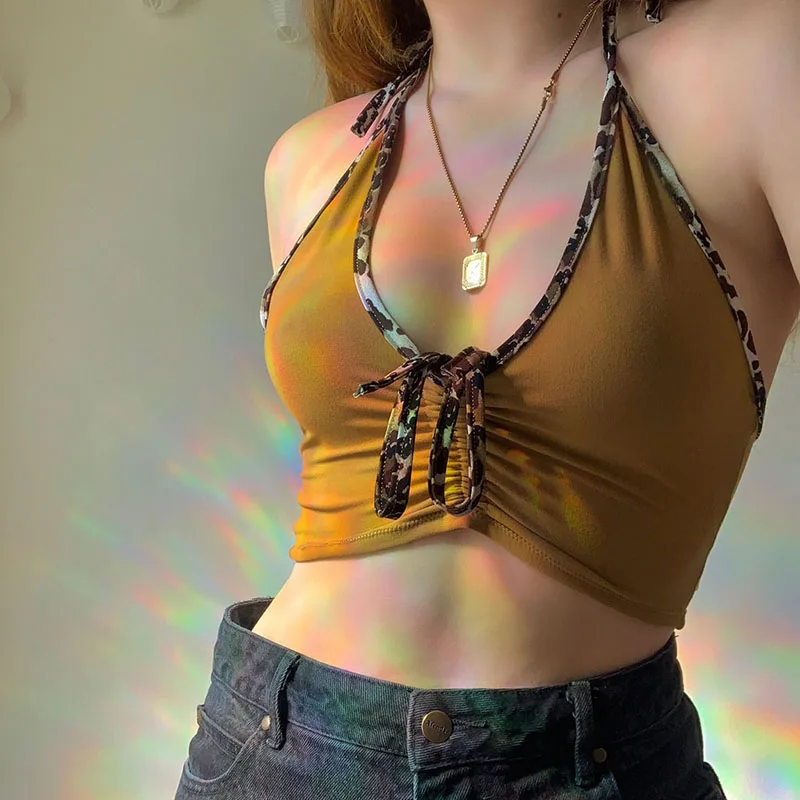 УКОРОЧЕННЫЙ ТОП Rapcopter с пейсли рюшами, майка с завязкой, топ с V-образным вырезом и лямкой на шее, Женский Летний новый корсет, Топ в стиле Харадзюку, милая майка 90-х